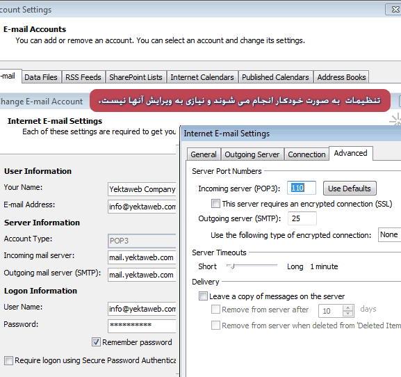 راهنمای استفاده از سرویس ایمیل شرکت یکتاوب به صورت آفلاین - استفاده از outlook